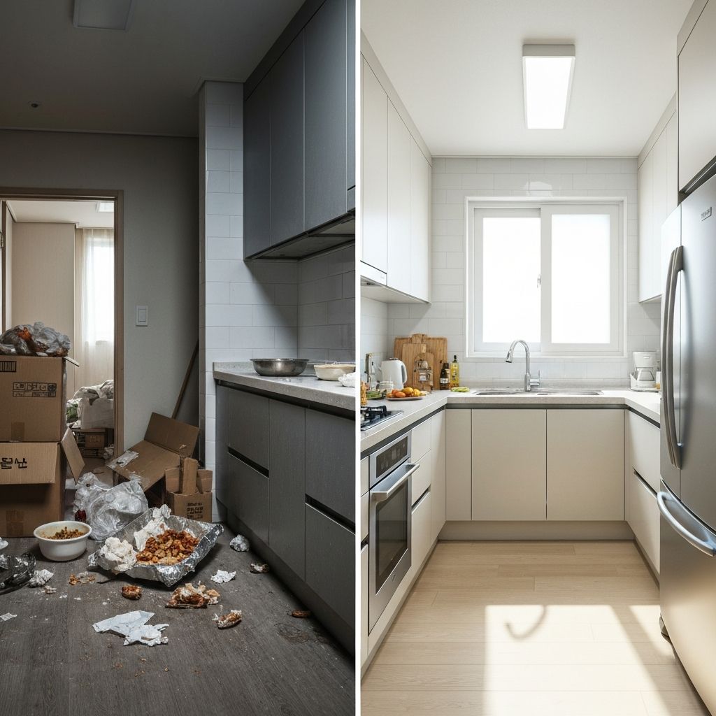 주방 후드 청소가 너무 더러워서 엄두가 안 났는데 미래청소에 맡기니 완전히 새것처럼 되었어요. 가스레인지 주변도 기름 때가 완전히 제거되었습니다. 강력 추천합니다!